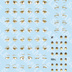 寸法: 114㎜(縦)×79㎜(横) 印刷種類: オフセット印刷 パターン:目線変更を含みアイデカール27パターン、口デカール6パターン×2セット、汗、開眼用まつげや瞳