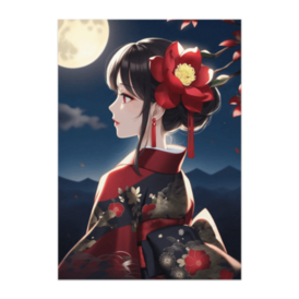 この商品はpixivFACTORYで作られた商品です。サンプル画像は完成イメージのため、実物と異なる場合があります。 満月の夜、赤い花飾りが揺れる横顔。 静寂と艶やかさが共存する、月光に包まれた和の美。