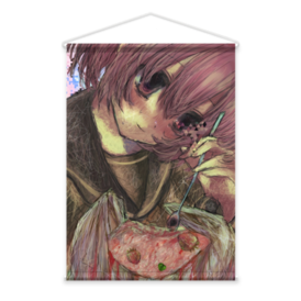 可愛いものは、食べられるために生まれた。 腐敗によるアートシリーズ「可食少女」を、 厚手のダブルスエード生地に高発色で印刷。 光を柔らかく吸い込み、 赤と白のコントラストを美しく再現します。 壁に飾るだけで、部屋が小さな展示空間に。 🩸サイズ:B2(515×728mm)縦 🩸印刷方式:昇華転写方式(高発色・布特有の柔らかい再現) 🩸発送:pixivFACTORYより直送(受注生産)