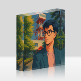 「小説:光の残響(レゾナンス)」シティポップ風表紙アクリルブロック