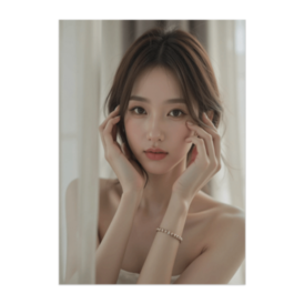 この商品はpixivFACTORYで作られた商品です。サンプル画像は完成イメージのため、実物と異なる場合があります。 穏やかな光に包まれた女性のアップポートレート。柔らかい表情と光のグラデーションが調和し、見る人に静かな安心感と美しさを与える一枚。