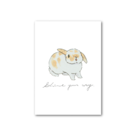 【アナログイラスト】shine your way うさぎさんはいつも道を照らしてくれる いつだって応援してくれる そんなイメージを込めて描きました イエロー系ブロークンのカラーの垂れ耳うさぎさんです 原画と同じようなサイズ感やイメージで楽しんでもらいたくて、あえて背景は白くしております。 原画の雰囲気を楽しんでもらえたら嬉しいです ※こちらはアナログイラストを取り込んだ作品です。手描きならではの温かみや魅力を楽しんで欲しいという想いから鉛筆の下書きや線のはみ出しもそのままになっております。ご了承ください。 また、英語につきましてはまだ勉強中なので、ちょっと不自然な表現があるかもしれません。 気持ちはしっかり込めて一つ一つ考えて作っていますので、あたたかく見守っていただけたら嬉しいです。 #うさぎ #垂れ耳うさぎ #ブロークン #ホーランドロップ この商品はpixivFACTORYで作られた商品です。サンプル画像は完成イメージのため、実物と異なる場合があります。