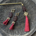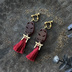 狐面とタッセルのイヤリング/ピアス 赤[数量限定]