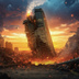 黄金時間の三景 ― 光の森/落ちる塔/黄昏シティ(背景3枚セット)