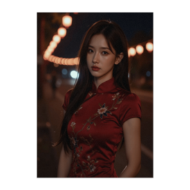 この商品はpixivFACTORYで作られた商品です。サンプル画像は完成イメージのため、実物と異なる場合があります。 深紅のドレスをまとい、秋の夜の灯りに照らされた女性。 ランタンの光がロマンチックに揺れ、幻想的な美しさを放ちます。