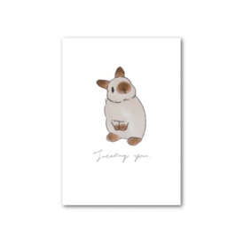 【アナログイラスト】feeling you 「飼い主の気配!」 飼い主の気配に敏感なうさぎさんを描きました セーブルポイントの立ち耳うさぎさんです 原画と同じようなサイズ感やイメージで楽しんでもらいたくて、あえて背景は白くしております。 原画の雰囲気を楽しんでもらえたら嬉しいです ※こちらはアナログイラストを取り込んだ作品です。手描きならではの温かみや魅力を楽しんで欲しいという想いから鉛筆の下書きや線のはみ出しもそのままになっております。ご了承ください。 また、英語につきましてはまだ勉強中なので、ちょっと不自然な表現があるかもしれません。 気持ちはしっかり込めて一つ一つ考えて作っていますので、あたたかく見守っていただけたら嬉しいです。 #うさぎ #立ち耳うさぎ #ネザーランドドワーフ #セーブルポイント この商品はpixivFACTORYで作られた商品です。サンプル画像は完成イメージのため、実物と異なる場合があります。