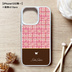 猫とツイードのスマホケース(桃×ブラウン/強化ガラス) iPhone16e iphone15 カバー