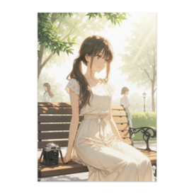 この商品はpixivFACTORYで作られた商品です。サンプル画像は完成イメージのため、実物と異なる場合があります。 やわらかな木漏れ日が差し込む公園のベンチ。 初夏の風に髪を揺らしながら、静かに微笑む彼女の姿を描いた一枚。 心を穏やかにしてくれる、透明感あふれるアニメイラストポスターです。