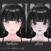 お肌全体を血色感を落とし青みがかったブルーベース肌にしつつ黒髪が映えるようなメイクになっています。 大人っぽい雰囲気に合うようなデザインです。 メイクはPSDファイルにてリップが7種、カラーマスカラが4種、眉の薄さが3段階、チークあり無し、ほくろが5種類の好みの組み合わせが可能です オマケで少し深いピンクベースのリアルな舌にもなります。 こちらの商品は以下のアバター対応のアイテムです。アバター本体・その他装飾品のデータは付属しておりません。 【対応アバター】 ・「ルミナ-LUMINA」ちゃん(https://extension.booth.pm/items/7502898) 【内容物】 (フルセット) ・PSD files...1(make up) ・UnityPackage ...1 -png files ...17(eye tex 5 発光tex5 舌tex1 make up tex6) -material ...2(Face1 Body1) ・Read me (メイクのみ) ・PSD files...1(make up) ・UnityPackage ...1 -png files ...7(舌tex1 make up tex6) -material ...2(Face1 Body1) ・Read me (アイテクスチャのみ) ・UnityPackage ...1 -png files ...11(eye tex 5 発光tex5 舌tex1) ・Read me ※本商品は一部マテリアル形式なっています。 ※導入にあたって顔と体の色を合わせるために体のテクスチャの色味調整が必要となります(方法は商品画像を確認するか、本商品のREADMEを必ずご確認ください。) 【注意】 ダウンロード商品のため、返品、返金等に応じることはできません。 【免責事項】 当モデルを使用した際に発生したトラブルや損失に対して一切の責任を負いません。 【その他】 不具合や問い合わせがございましたらショップDMよりお問い合わせをお願いします。