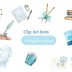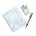 やさしいパステルブルーの水彩タッチで描かれた、上品でおしゃれなアンティーク文房具のクリップアートです。