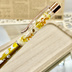 ⑥猫柄ハーバリウムボールペン本体メタリックイエロー×オレンジ黄色金木犀入りハンドメイドドライフラワー文房具筆記用具プレゼント推し色