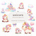 かわいいユニコーンのイラスト素材:Rainbow Unicorns Clipart