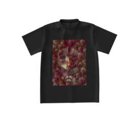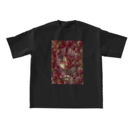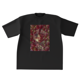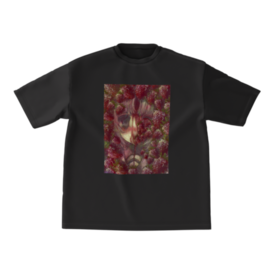 ゆるく落ちる肩のラインと厚めの生地が、 まるで“触れてはいけないやさしさ”を包むような着心地。 UV印刷による高発色で、 血のような赤と果実の深い闇が、 布の上で静かに呼吸します。 一枚で外に出ても、 夜の光の下でだけ見える違和感を楽しめます。 印刷:高精細UVインクジェット印刷