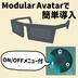 chalinessのグラサンです Modular Avatar対応 EXメニューからON/OFF可能 ■導入方法 1. プロジェクトにMdular Avatar(https://modular-avatar.nadena.dev/ja)とliltoon(https://lilxyzw.github.io/lilToon/)をインポート 2. chaliness_sunglassをインポート 3. prefabをアバター直下にドラッグ&ドロップ 4. サイズと位置を調整して完了 うまく装着できない場合はprefabのMA Bone Proxyにアバターの頭のオブジェクトが設定されているか確認してください 不明点や不具合があればchaliness0416@gmail.comもしくはX(@chaliness_music)のDMまでご連絡ください。