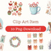 パステルカラーの可愛い海外クリスマスクリップアートセット(全10種類/PNG背景透過)