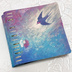 革文具の【&B】様に特注で作っていただいた 「折り返せる手帳・M5スクエア」を染めて描いた物語🕊️ ー金の記憶ー 綿毛ちゃんの目を通して 指輪から辿る 金の記憶 この金はかつて 幸福な王子の像であった 本革を染めています。使い込んでいく(リングのメッキが剥がれたり)すると、「幸福な王子」の物語が進んでいく、使う原画というコンセプトで制作しました。 ※水に濡れると絵が滲みますのでご注意ください。 起毛革(ヌバックに近い感じ)ですので、お手入れは速乾性の防水スプレーをご利用ください。 ラメを使用しておりますので、ブラッシングは優しくおねがいします。 詳しい作品解説はこちら https://www.fanbox.cc/@tsumu-pi-chan/posts/10534631