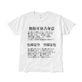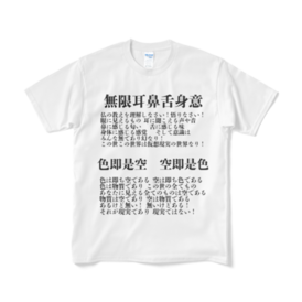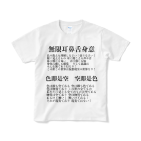 仏の教えTシャツ 釈迦(仏)が見て体験したという悟りを、釈迦なりの言葉で仮想現実について弟子達に話したことが『般若心経』として今も受け継がれている。 この商品はpixivFACTORYで作られた商品です。サンプル画像は完成イメージのため、実物と異なる場合があります。