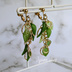 呪術廻戦 狗巻棘 イメージ イヤリング/ピアス ─静かなる強さ、優しさを包む翠─ アクリルパーツ、メタルパーツを使用しています! 掲載はイヤリングですが、サージカルステンレスのキャッチタイプピアス、フックタイプピアスへ変更可能です!ご希望の場合は、お知らせください! ☆サージカルステンレスは、金属アレルギーを引き起こしにくい素材として知られています!医療器具やボディピアスなどによく使用されています! 全長(モチーフ部分)約5cm 棘生誕祭2025のお祝いに作成したお品です! 棘のイメージカラーのグリーン、口元の蛇の目をグリーンリーフとリング状のメタルパーツで表現しました! リーフは“優しい”イメージもあるので、仲間思いの棘のイメージに合うモチーフだなぁ♡と思い、たっぷり使ってキラキラと華やぐ耳飾りに仕上げました! 推しイメージカラーアクセサリーで気分UP♫ 華やかなデザインで女子力もUP♫なお品です!