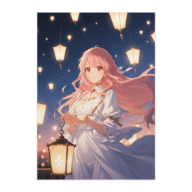 この商品はpixivFACTORYで作られた商品です。サンプル画像は完成イメージのため、実物と異なる場合があります。 夜空に舞うランタンの光に包まれた少女。静かな風と優しい表情が印象的な、幻想的で心安らぐポスター作品です。