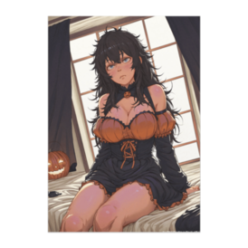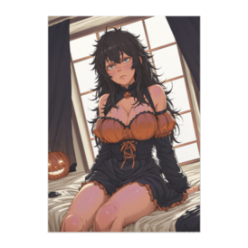 ポスター - B2この商品はpixivFACTORYで作られた商品です。サンプル画像は完成イメージのため、実物と異なる場合があります。 ハロウィンの朝、着飾ったもののどこか浮かない顔の魔女見習い。 部屋に差し込む光の中で、少し憂鬱な時間を過ごす彼女を描いた一枚。 現実寄りのアニメタッチが魅力の、静かなハロウィンポスターです。