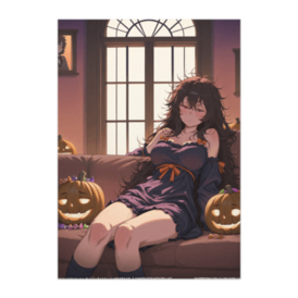 ポスター - B2この商品はpixivFACTORYで作られた商品です。サンプル画像は完成イメージのため、実物と異なる場合があります。 ソファに沈み、かぼちゃランタンに囲まれた秋の午後。 静けさと暖かさが共存する、等身大のハロウィンポスター。 彼女の少し疲れた表情が、見る人の心をやさしく包みます。