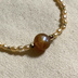 Inner circumference: 15.5 cm Material: freshwater pearl beads, natural stone beads, 14KGF beads, stretch cord Color: muted amber, soft orange, gold 8mmの一粒プラジオクレースムーンストーンを使用したブレスレットです。 角度によってやわらかく光を放つシラーが浮かび上がり、神秘的な輝きを添えます。 落ち着いた深みのあるミューテッドアンバーが秋の温かみと上品さを感じさせ、柔らかいオレンジカラ一の淡水パールを組み合わせることで全体に統一感を持たせました。 柔らかく女性らしい雰囲気を演出し、落ち着きと上品さを併せ持つ、手元を彩るブレスレットです。 ブレスレットは透明ゴムを使用しており、内周15.5cmになっています。 【About Plagioclase Moonstone】 プラジオクレースムーンストーンは主にチベットで産出され、古くから聖なる石として祭祀に用いられてきたといわれています。 この石は、女性らしさや恋愛成就を高めるとされ、危険の予知や直感力の向上、固定観念の解除にも役立つと伝えられています。また、カルマの浄化やマイナスエネルギーの排出、自分が望む方向に進むサポートをするといわれています。 *撮影時には可能な限り実際の色味を再現するよう努めておりますが、完璧ではない場合がございますことをご了承ください。 *返品はお受けできません。 *納品書、領収書は発行いたしません。