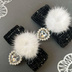 ファー♡ハートツイードミニリボン 黒 ヘアクリップ 量産型 地雷 ゴスロリ