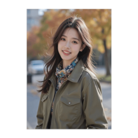 ポスター - B2この商品はpixivFACTORYで作られた商品です。サンプル画像は完成イメージのため、実物と異なる場合があります。 カーキのジャケットと花柄スカーフが秋風に揺れる瞬間。自然体の笑顔が心に残る、ナチュラルポスターです。