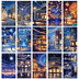 【縦型配信素材】冬の夜のキラキラしたイルミネーション水彩イラスト30枚セット