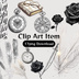 手書きの温かみとスタイリッシュな雰囲気をあわせ持つ、モノトーンのかっこいいクリップアートセットです。 懐中時計、黒い薔薇、剣など、同人誌・イラスト・デザイン制作にぴったりの10アイテムを収録。 線画タッチで繊細に描かれており、背景を選ばず使える透過PNG形式。 表紙デザインや装飾、カット素材としても活躍します。 【内容】 ・全10種類の手書き風モノトーンクリップアート (懐中時計/黒い薔薇/剣とチェーン/羽根と光/古い本と眼鏡/文字模様) 【ファイル形式】 ・PNG(背景透過) 【おすすめ用途】 ・同人誌の表紙・挿絵・扉ページ ・デザイン素材(ポスター・フライヤー・名刺など) ・SNSやWebサイトの装飾 ・グッズ制作のアクセントに