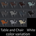 椅子とテーブル - 24色(下記12色+パイプ脚白と黒) Black / White / Wood / Wood dirt / Wood natural / Wood blue gray / Light green / Wood gray / Stone gray / Wood red / Wood beige 棚 - 7色 Black / White / Wood / Wood dirt / Wood natural / Wood blue gray / Light green ソファ - 5色 drown / red / blue / green /beige クッション - 2色 2個で1つのセットとして考えるなら2色です。 black / orange 額縁 - 7色 Black / White / Wood / Wood dirt / Wood natural / Wood blue gray / Light green ペンダントライト - 2色 white / black 🪄「いくつかのドア3」と同系のカラーパレットを使用しており、同シリーズで並べて使うと自然な統一感が生まれます。 ↓いくつかのドア3(別売)はこちら↓ https://bokumike.booth.pm/items/7433187