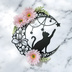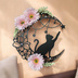 花咲く月の猫リース 壁掛け リース フラワー 花 ガーベラ 黒猫 猫 ネコ 月 ルナ ムーン 神秘的 オシャレ かわいい スワロフスキー スワロー ラインストーン ファンシー ファンタジー シルエット クリスマス インテリア プレゼント ギフト 母の日 誕生日