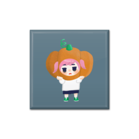 缶バッジ - 四角形40mm2026年ハロウィンイラスト、かぼちゃぴょんこです。 かぼちゃは食べる派です。 この商品はpixivFACTORYで作られた商品です。サンプル画像は完成イメージのため、実物と異なる場合があります。