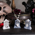 <Angelic Garden> 静かな風が薔薇を揺らし、天使たちが祈りを捧げる。 羽音のように光が舞い降り、墓標に優しく導きを放つ。 ここは、傷も罪もやさしく包み込む庭。 ♱✧♱ ✧♱ ✧♱ ✧♱ ✧♱ 天使たちが寄り添う薔薇の墓標。 失われた願いも、今はただ穏やかな光の中で眠る。 天使が集う清らかな庭園に添えられた、クラシカルで神聖な墓石のネックレス。 薔薇の意匠が彫られたパール調ビーズが優しい祈りを添えます。 原型からオリジナルで制作し、一つ一つハンドメイドで制作しています。 マーブル模様の出方には個体差があり、世界にひとつだけの表情をお楽しみいただけます。 ロリィタ系・ゴシック・クラシカルな装いに、ひとさじの退廃美を。 幻想の中の安息を、あなたに。 カラー展開: マーブルグレー/マーブルレッド/ホワイト/スカイブルー/アメジスト ※天使・薔薇パーツには個体差があります。写真をよくご確認のうえお選びください。 サイズ:およそ50cm 金具素材:サージカルステンレス(※すべての方にアレルギーが出ないわけではありません) 💐初回限定価格について 現在の原型は試作初期ロットのため、 レジンの流れやマーブル模様に個体差が出やすくなっております。 そのため、改良版の完成まで【初回限定価格:¥3,500】でお届けいたします。 今後、原型を調整し仕上がり精度を高めた際には、 通常価格(¥4,000予定)に変更いたします。 –––––––––––––––––––––––––––––––––––––––––––––––––––– 発送方法:あんしんBOOTHパック ¥ 540~(※地域によって異なる) 発送日数:ご入金確認後3日以内