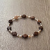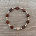 ビーズブレスレット No.146 オレンジムーンストーン 天然石 ヴィンテージ ウッドビーズ パール
