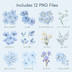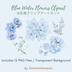 ブルーベースの冬の花クリップアート|水彩風フローラルイラストセット|透明背景PNG素材|Eucharisbouquet