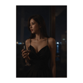 ポスター - B2この商品はpixivFACTORYで作られた商品です。サンプル画像は完成イメージのため、実物と異なる場合があります。 夜の街明かりを見つめる彼女の横顔。 ワイングラスを手に、静かな思索に沈むその姿は、夜そのもののように美しい。