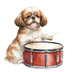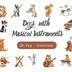 【Dogシリーズ】水彩画風ー楽器を奏でる犬たちのクリップアート20点セット│PNG背景透過