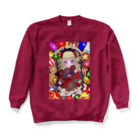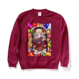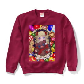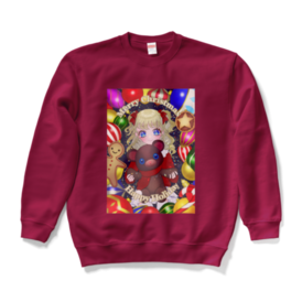 スウェット - XL - バーガンディきらきらのオーナメントに囲まれた女の子の絵のスウェットです。 ホリデー気分を盛り上げる楽しい一枚✨️これであなたもクリスマス🎄 ぜひぬいぐるみを抱いた時の喜びを胸にプリントしてください。 この商品はpixivFACTORYで作られた商品です。サンプル画像は完成イメージのため、実物と異なる場合があります。