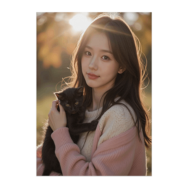ポスター - B2この商品はpixivFACTORYで作られた商品です。サンプル画像は完成イメージのため、実物と異なる場合があります。 柔らかな秋の光に包まれて、優しく黒猫を抱く女性。 穏やかな微笑みと金色の光が、心をあたためてくれる一枚です。 やさしい季節のぬくもりを感じるポスターアート。
