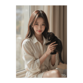 ポスター - B2この商品はpixivFACTORYで作られた商品です。サンプル画像は完成イメージのため、実物と異なる場合があります。 やわらかな朝の光が差し込む窓辺で、黒猫を抱く女性の微笑み。 新しい一日の始まりを感じさせる清々しいワンシーンです。 ナチュラルで上品なインテリアにぴったり。