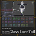 💎 ガラスレースしっぽ 黒いレースが織り込まれたガラス細工のしっぽ 繊細で上品なデザインのマテリアルです。 光の反射によってワールドの環境光に合わせて印象が変化します。 ↓🤍白いレースはこちら🤍↓ https://nyaruroom.booth.pm/items/7349082 ✨ 概要 マテリアル数:34種類(今後の更新で追加予定) 対応シェーダー:liltoon(必須導入) 対応アバター: オリジナル3Dモデル「rurune」-ルルネ- / Paryi 様 https://booth.pm/ja/items/5957830 📦 内容物 UnityPackage 導入方法.png ※ アバター本体は付属しません。