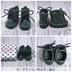 ※受注制作のため、発送までに3~7日ほどお時間をいただきます。 ※オーダーフォームにはオビツ11サイズしかありませんので、「ねんどろいどどーる」サイズに変更をご希望の場合はご注文後すぐにメッセージでお知らせください。 セット内容 ●マグネット内蔵レースアップブーツ1足 ●靴下1足 ●靴箱1コ サイズ詳細 【OB11】 オビツ11ボディ ピコニーモPボディ PICCODO (ピコドー) 2.0以降 ※初期版ピコドーは足が大きいため使用できません。 紐とソールを黒で仕上げています。 ステッチのカラーは当方お任せ仕様(本体の革に合わせて選びます)ですが、ステッチも黒をご希望の場合は、ご注文後すぐにメッセージでお知らせください。 ハンドメイドの手縫い作品です。 素材は染色した牛ヌメ革で、硬めの仕上がりで形崩れしづらいですが、経年変化で革が柔らかくなっていくことがあります。 靴底にマグネットが内蔵されており、鉄板上では片足立ちなどのポーズがつけられます。 鉄板が無くても両足で自立します。 マグネットの効果を上げるため、靴底をかなり薄くしています。そのため、マグネットが内蔵してある部分の革が擦れて若干色が変化している場合があります。 防カビ対策として仕上げ剤を塗布しております。 ※ドールのボディはついていません。 【注意事項】 天然の革素材を使用しているため、革の表面に元からある細かい傷やシワがあります。 市販の染色済みヌメ革を使用しております。 染色したヌメ革は、時間と共に色合いが経年変化していきます。あらかじめご承知おき下さい。 色止め処理はしてありますが、ドール素体への色移り防止のため靴下着用を推奨します。 簡単に脱げてしまわないように、かなりタイトな作りになっています。 すべて着用テストをしておりますのでご安心ください。