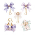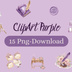 💜 紫のアンティーク水彩文房具クリップアートセット – 15点セット(PNG)