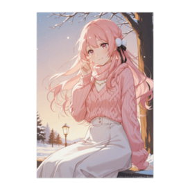 ポスター - B2この商品はpixivFACTORYで作られた商品です。サンプル画像は完成イメージのため、実物と異なる場合があります。 雪の光に包まれて微笑む女性。 淡いピンクのニットと白いスカートが描く柔らかなコントラストが、 冬の午後にぴったりな癒しの一枚です。