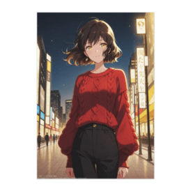 ポスター - B2この商品はpixivFACTORYで作られた商品です。サンプル画像は完成イメージのため、実物と異なる場合があります。 街の灯が輝く冬の夜。 赤いニットと黒のパンツが織りなすコントラストが印象的な、 大人の女性のファッションアートポスター。
