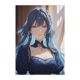ポスター - B2この商品はpixivFACTORYで作られた商品です。サンプル画像は完成イメージのため、実物と異なる場合があります。 柔らかな日差しが差し込む部屋で微笑む青髪の女性。 宝石のような瞳が澄み渡り、静かな強さと優雅さを感じさせる。