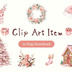 ピンク×アンティーク×水彩のクリスマス クリップアートセット(全10種類/PNG)