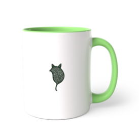 ツートンカラーマグカップ - 直径 8.2cm / 高さ 9.5cm朝の霧のように静かで、夜の森のように凛とした。 りゃんシーの葉っぱマークをあしらったマグカップです。 葉のようで、獣のようで。 自然と人のあいだに立つ“しるし”を、日常のそばに。 ・材質:ストーンウェア(しっかりした陶質) ・印刷方式:昇華プリント ・サイズ:高さ95mm/直径82mm/内径72mm ・持ち手幅:15mm ・重量:約350g 温かいお茶やハーブティーを入れても、 ひとりの時間が少しだけ「森の空気」になるように。 りゃんシーのトートとおそろいでどうぞ。