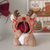 Petit Cadeau Noël 真っ赤なお鼻のトナカイさん!ふわふわのおなかと、赤いリボンがチャームポイント。 右腕は縫い付けてあるため可動しませんが、左腕は磁石を使用することで、お好きな位置で固定できます♩また、お座りも可能なので一着で様々な表現ができます🦌 大切なぬいちゃんへ贈る、小さなクリスマスプレゼントにいかがですか?🎁 🎄販売内容 ・トナカイの着ぐるみ 全長約11~12cm、頭囲約20~25cmぬいぐるみ向け ※ お手持ちのぬいぐるみの個体差により、着用できない場合がございます。ご了承の上、ご購入ください。 ⚠️ 本作品は磁石を使用しています。取り扱いにはご注意ください。 裏地に伸縮性の弱い生地を使用していますが、何度か着用させていくうちに生地が柔らかくなっていき、着せやすくなります。 🏣クリックポストで発送